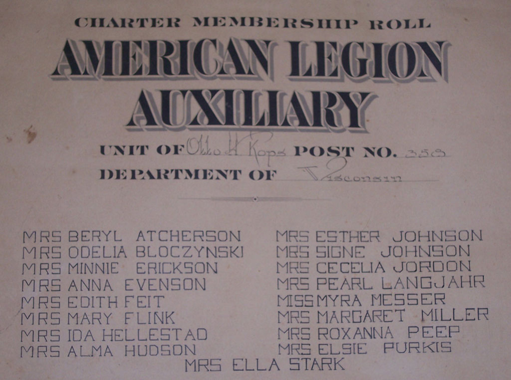 American Legion Post 358, Unity, Wisconsin was chartered in May 1922 as the Otto H. Kops Post.